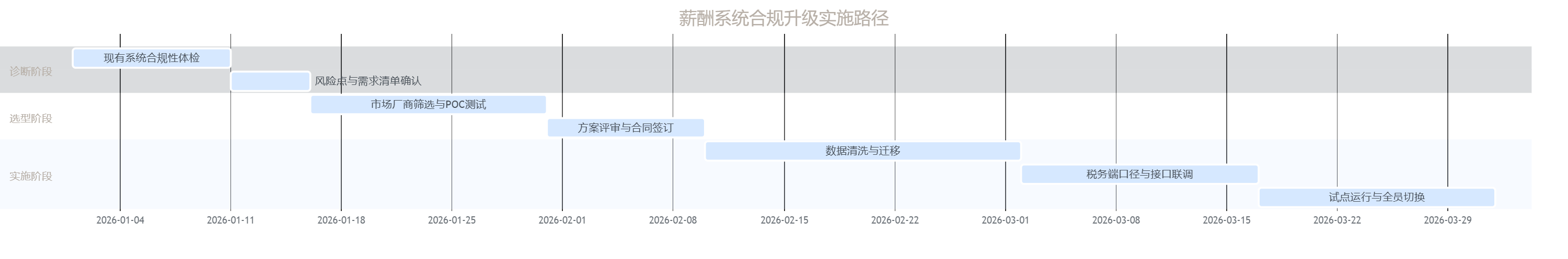 - 用极端样本做POC:入离职当月、跨月补发追扣、主体变更三类样本跑通全链路,对账通过再决策。