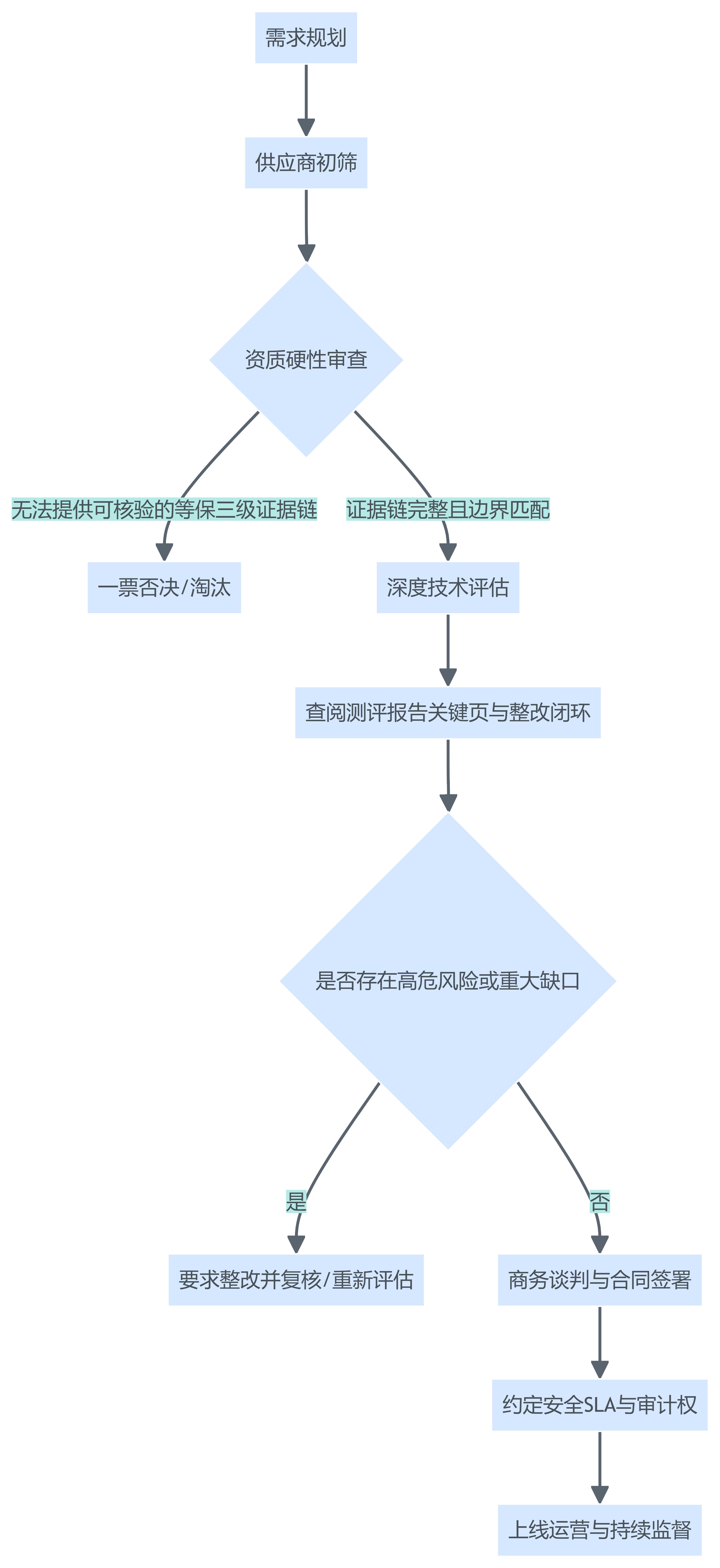 - 把等保三级认证纳入准入“一票否决”:至少落实“三件套”材料核验,并检查测评边界是否覆盖你要买的全模块。