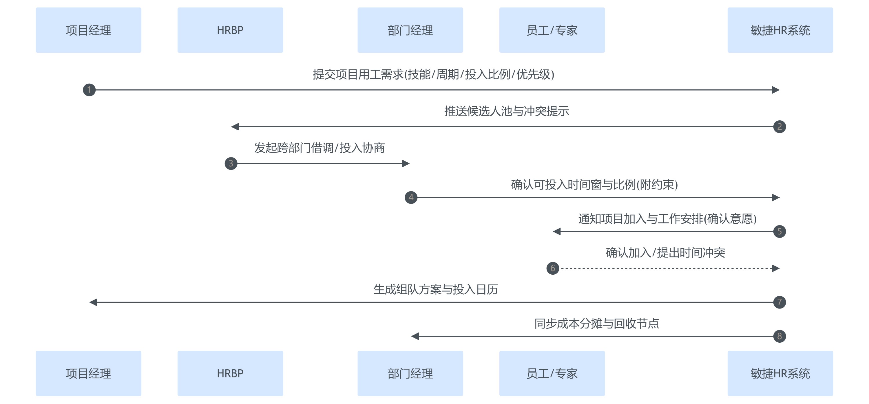 | 项目制人力编排与灵活用工 | 资源冲突、借调靠人情、投入不可核算 | 组队周期、关键项目缺口时长、人力利用率、项目成本准确率 |