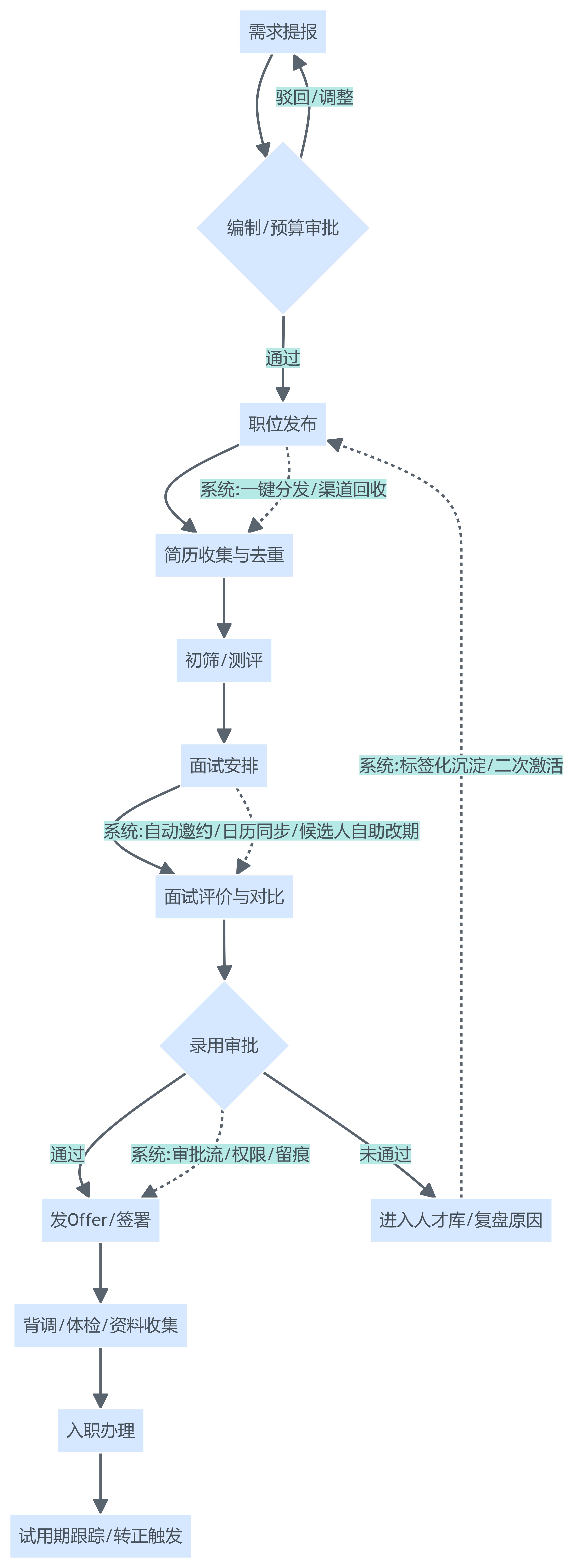 - 需求提报与审批:岗位需求临时变更、HC口径不清、审批链条不透明;