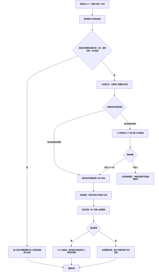 - 拒绝原因必须可追溯:不是“系统不匹配”,而是明确到岗位画像中的具体项(技能、经验、薪资、到岗时间等)