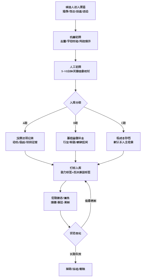- A级:完成深度访谈记录(关键动机、底线条件、薪资结构)、至少一次信息核验(在职状态、关键项目真实性)、可在特定赛道反复推荐。